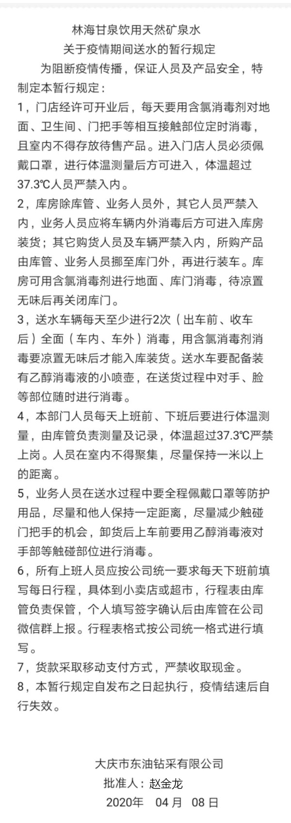 林海甘泉礦泉水疫情期間送水的暫行規(guī)定